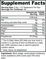 Ingredients: Birch Chaga, Wood extract containing humic substance (25% humic acid, 75% fulvic acid).