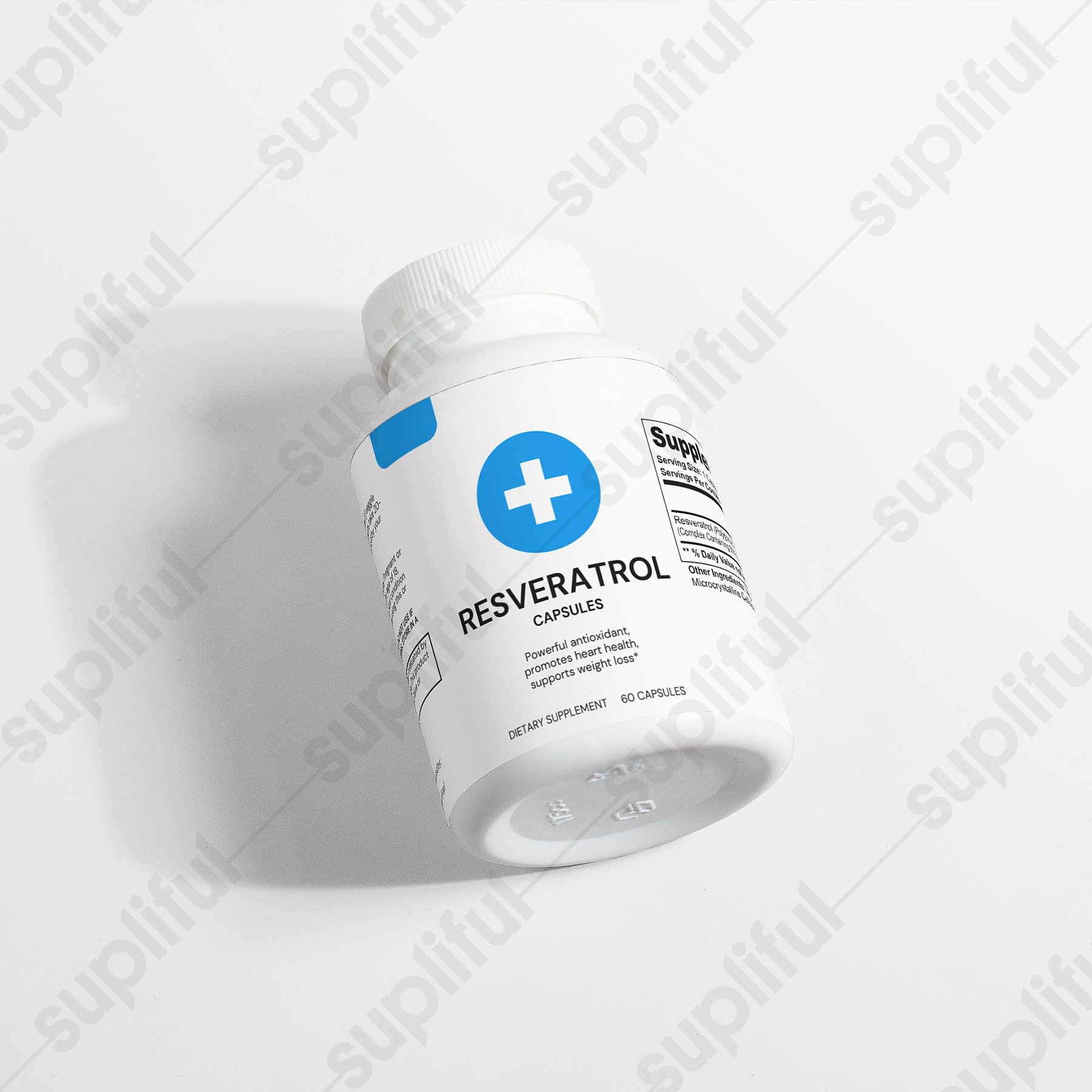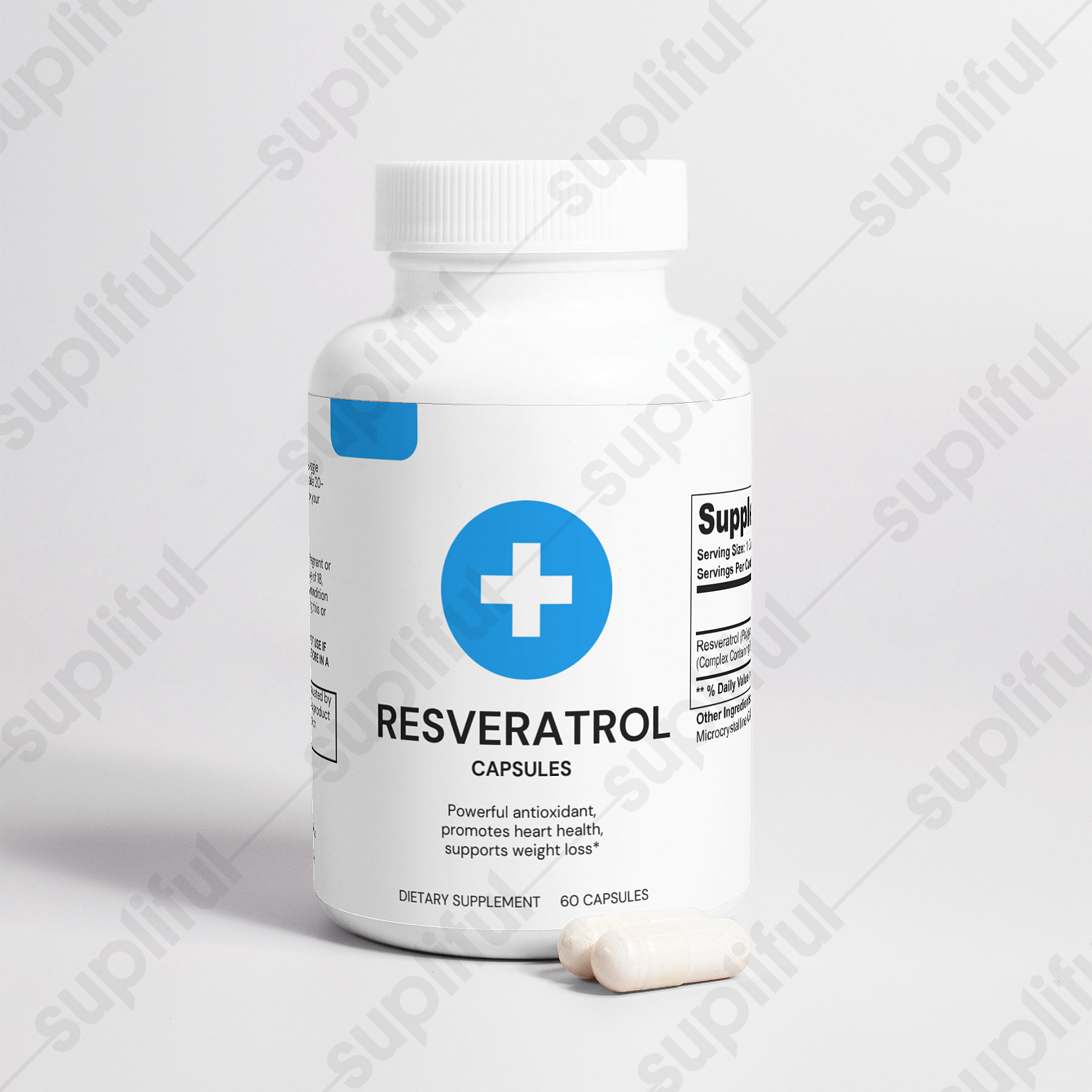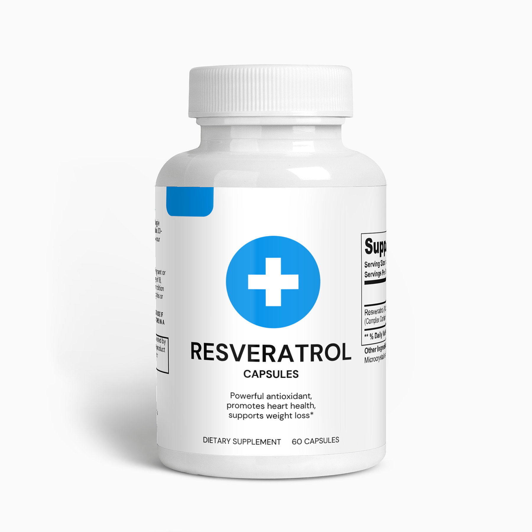 Ingredients: Resveratrol (Polygonum cuspidatum)(root) Complex Containing 50% Trans-Resveratrol, Vegetable Capsule (Cellulose), Microcrystalline Cellulose.